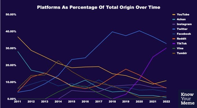 O gráfico a seguir mostra algo muito interessante. Desde 2015, as tendências na internet vêm majoritariamente do Twitter:
